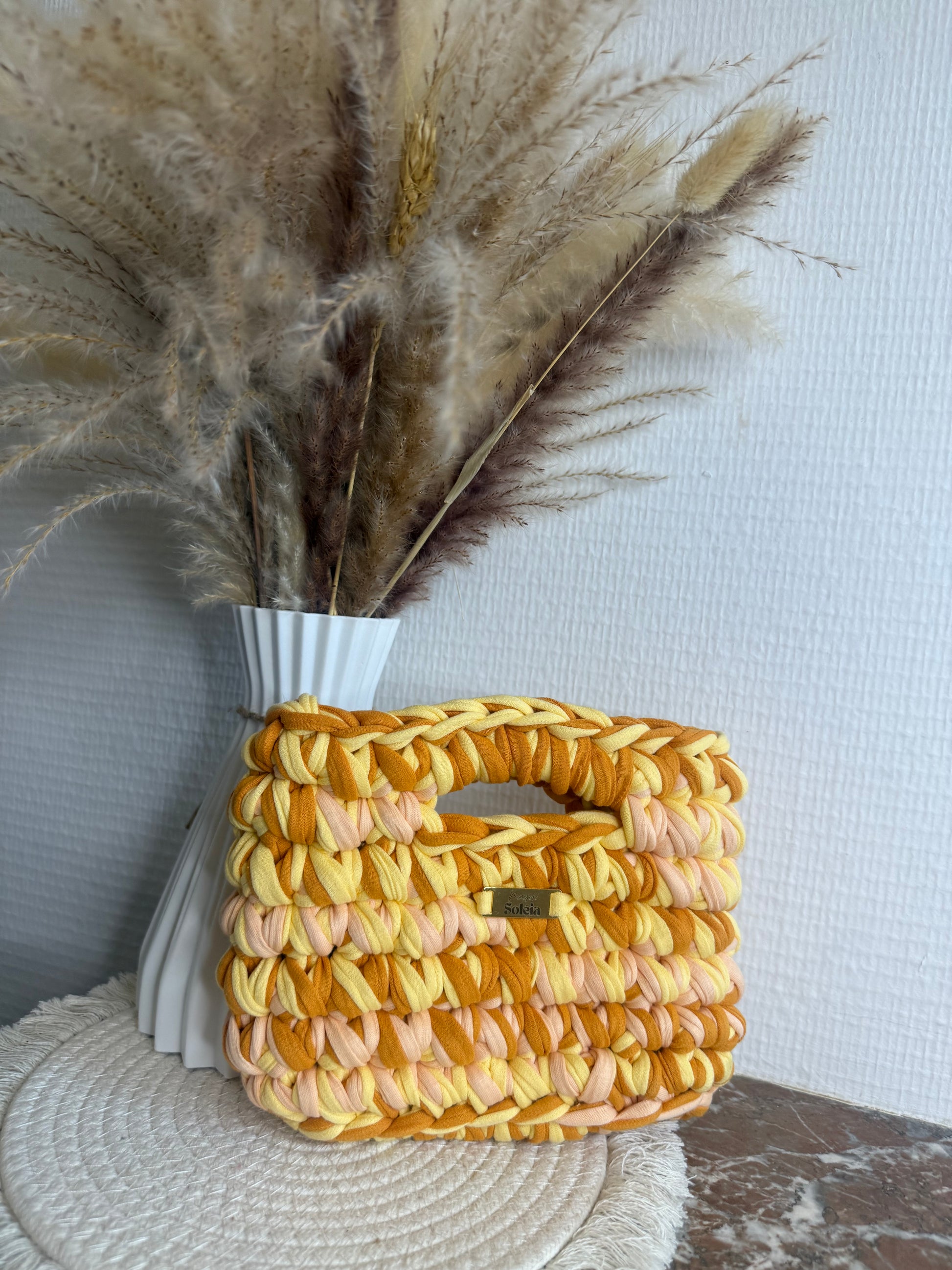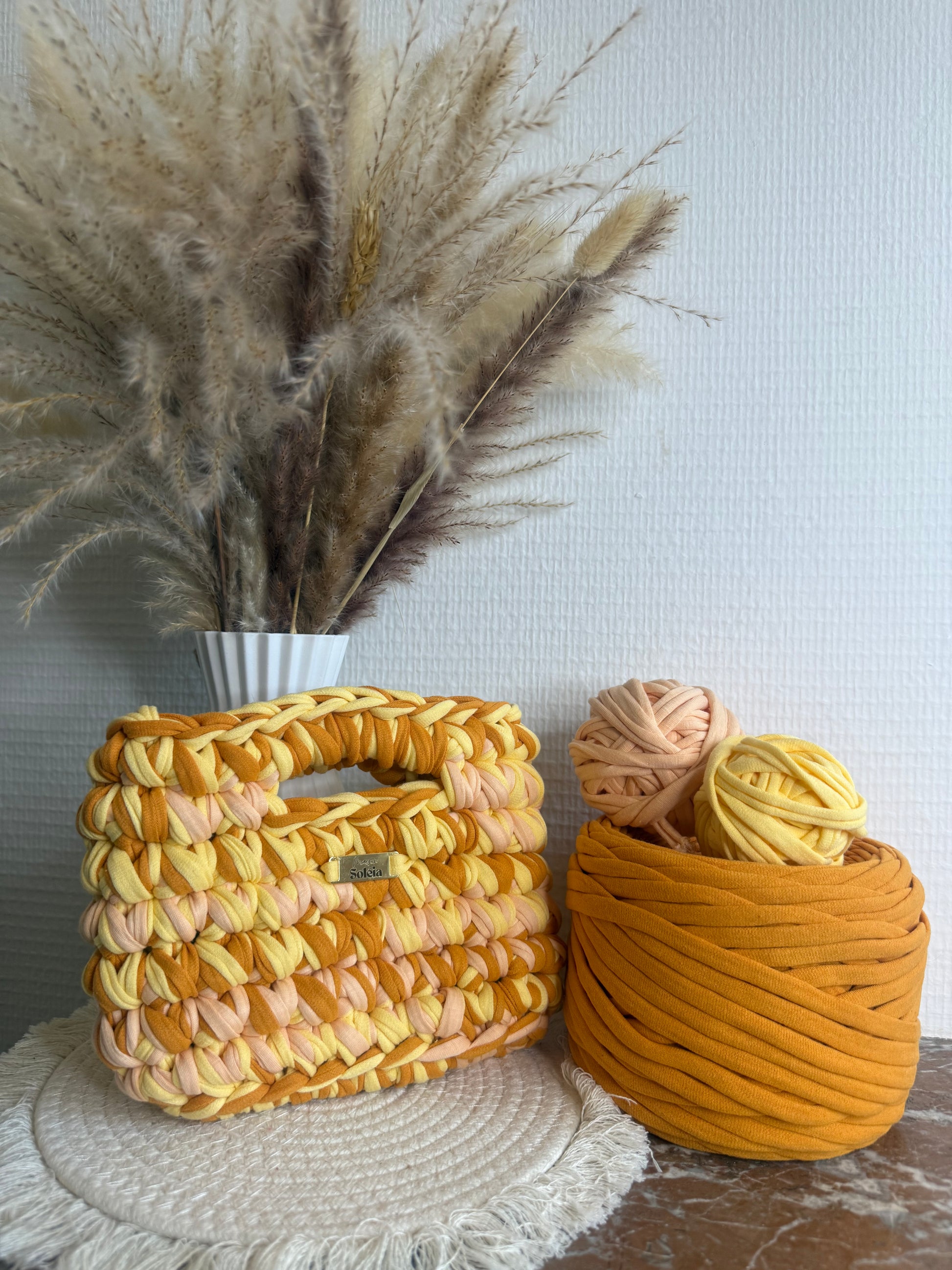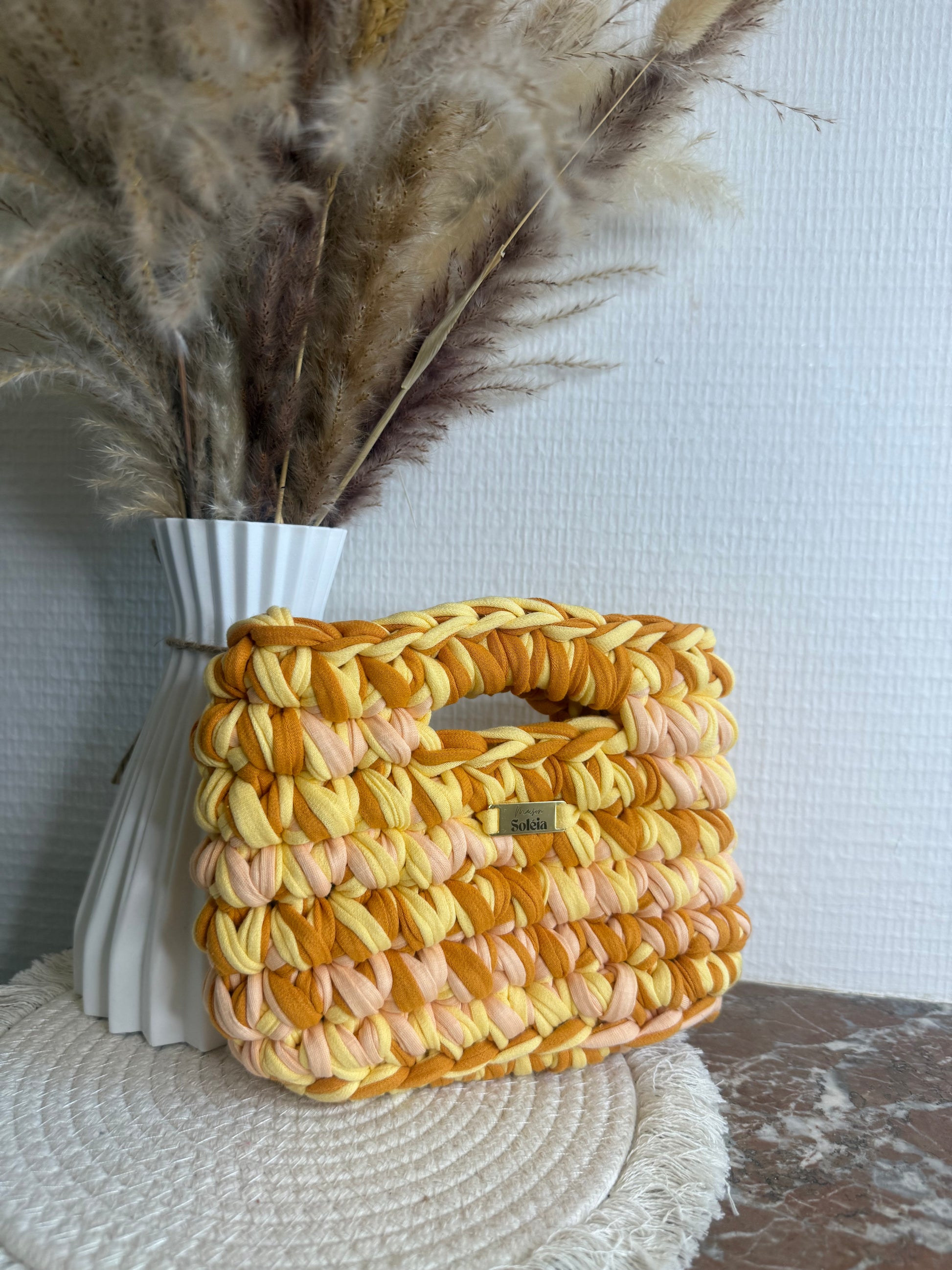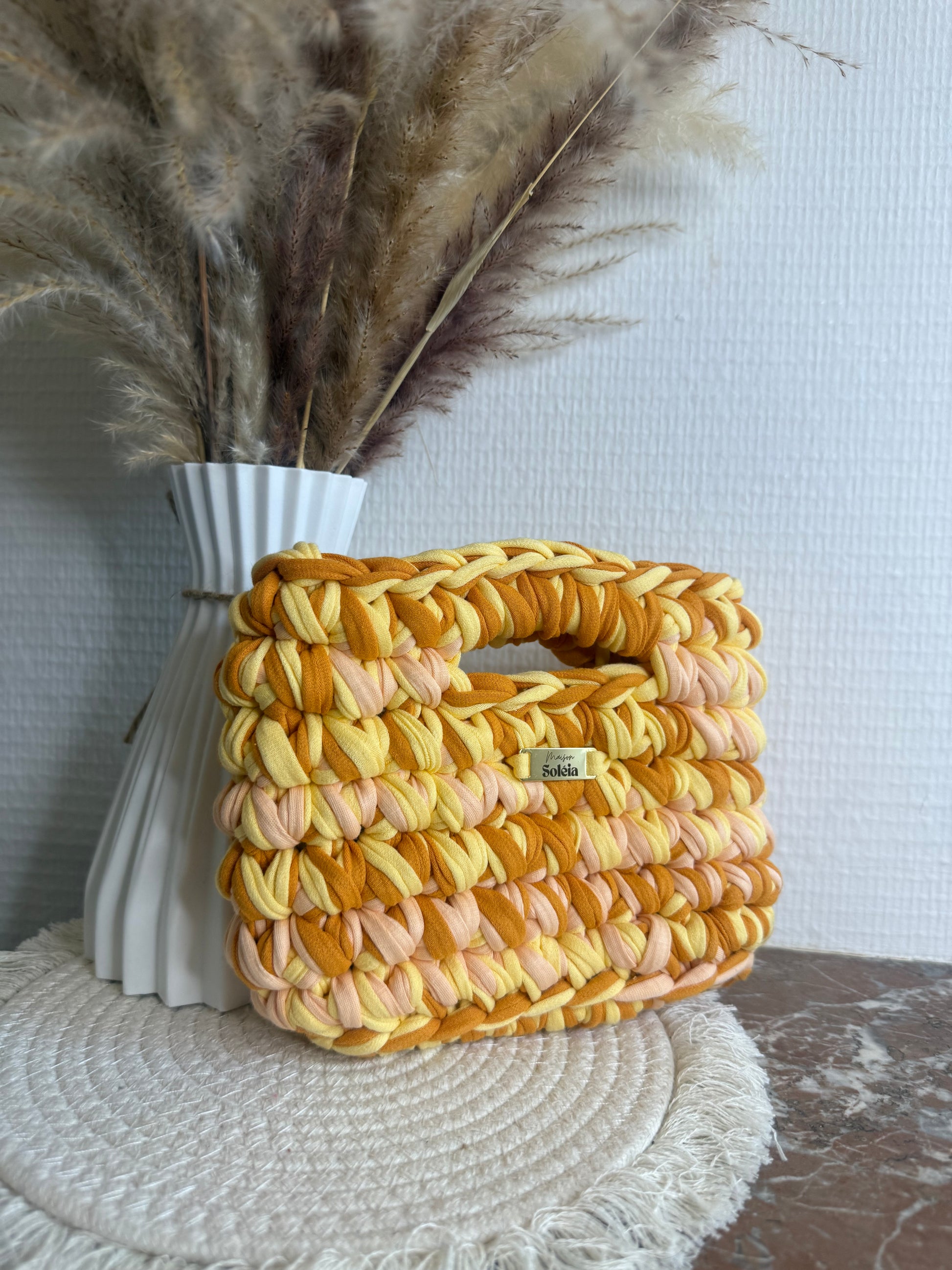Crocheté avec soin en France en fil tee-shirt doux, épais et légèrement extensible, il allie confort, résistance et tenue parfaite.
